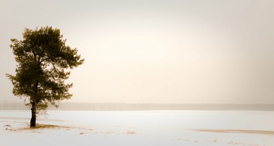 сначала когда глянул, подумал, что хотелось бы дерево чуть свдинуть дальше от края кадра. Просто такое ощущение. Потом почитал коментарий и подумал, что если его сдвинуть, то будет очевиднее, что за кадром никто не притаился и он один