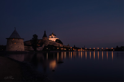 На берегу было три художника, которые рисовали Кром - начали ещё днём, а тут заканчивали. Приходили фотографы поснимать, иногда разрезал воду катер на подводных крыльях и запах чистой речной воды! Великая чистая речка, в ней много водится рыбы...