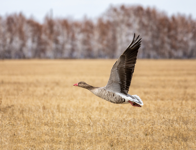Серый гусь.. снимок из серии.. снято в Омском гос. заказнике "Степное. Птица сидела недалеко от стаи, позволила себя пофотографировать, потом улетела недалеко, где фотосессия была продолжена, а потом гусь попрощался со мной и улетел далеко уже.. Возможно, он не совсем здоровый, чего не скажешь о его внешнем виде, самой интересно, почему он не в стае.. и, конечно, он является сейчас хорошей приманкой для орлана белохвоста. |