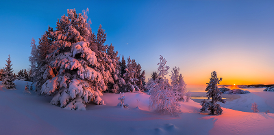 Ладожская зима. Красочно-снежный закат.