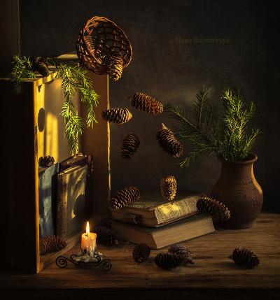натюрморт, летающие шишки