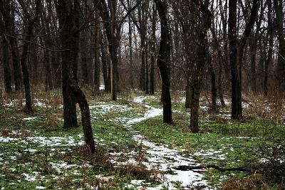 Деревья, снежная тропинка