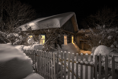 Старый домик в Покче К середине зимы с трескучим морозом старый деревянный домик заметно погрузился в снег. Только теплый свет окошек напоминал о домашнем уюте, рождественских пирогах и доброй хозяйке. |