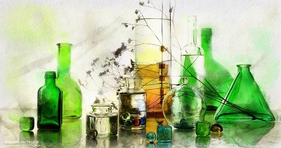 зелёное стекло.
