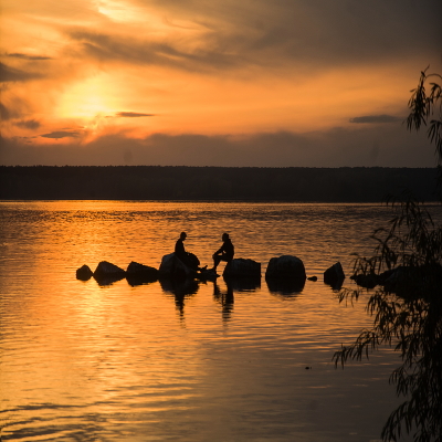 двое на камнях у озера