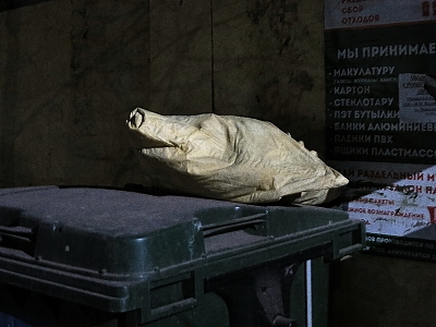 Шел с работы, краем глаза увидел что-то, похожее на свинтуса. Это был смятый бумажный мешок на мусорке. Щёлкнул))