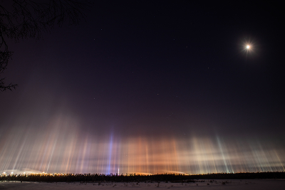 В облаках алмазной пыли Красочный световой лес образовался над Новым Уренгоем 26 февраля. Благодаря оптическому эффекту отражения света в ледяных кристаллах, горожане могли наблюдать вот такое природное явление, поистине схожим с северным сиянием. |
