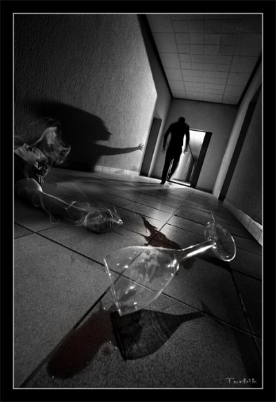 Сюжет понятен, но я думаю что душа так быстро тело не покидает, ведь фужер то еще до конца не упал ).