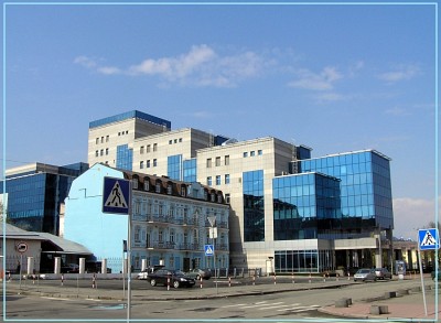 люблю рассматривать такие фотки)). искать гармонию), завидовать смелости архитектора, прилепившего хайтековскую стеклобетонную коробку к шедеврику 19 века), поражаться находчивости домоуправленческих маляров, что тремя бочками колера блакита попытались сцепить в единую гамму и небо и стёкла хайтека и фасад с ажурными балкончиками)), остатки линули на торец красавца). и очень гармонично, попадая ну прямо в цвет)), смотрятся флажки переходов)) - тут уж гаёвые подсуетились - а то как же без них)))). автору фотки респект))))