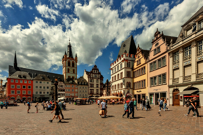 Рыночная площадь города Трир Площадь Хауптмаркт, также называемая Главной или Рыночной площадью, является центральной и одной из самых больших в Трире. Она находится в историческом районе на пересечении важнейших торговых улиц средневекового Трира. В 958 году по распоряжению Генриха I, архиепископа трирского, на площади Хауптмаркт был установлен так называемый Рыночный крест: каменная колонна, с крестом наверху - символ суверенитета, особых привилегий для развития торговли и власти церкви над городом. |