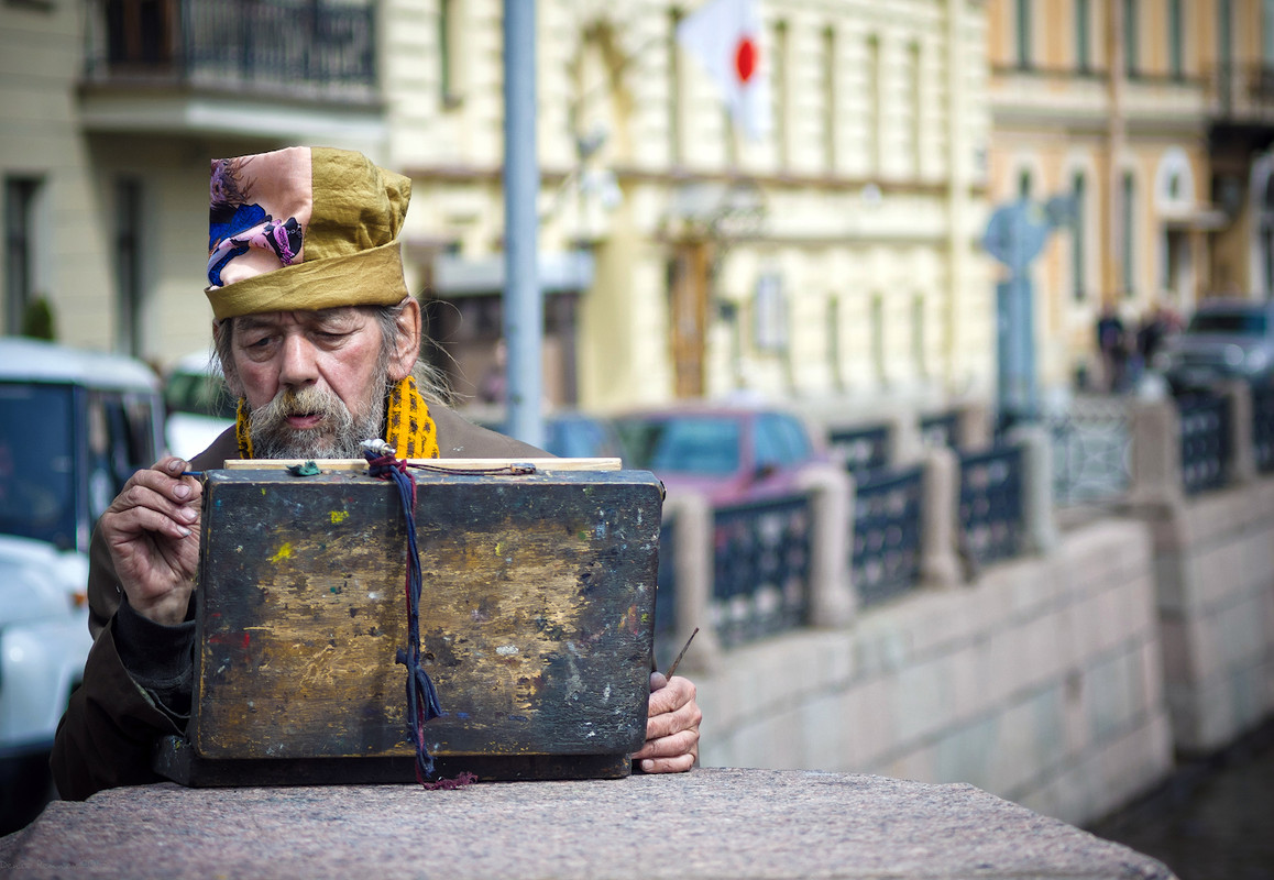 Уличные художники не шибко любят, когда их фотографируют. Тут девушка совсем замученная. ...