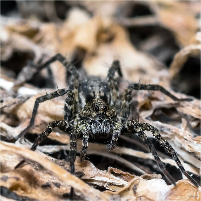 Пятнистый паук-волк (Pardosa amentata). Самка