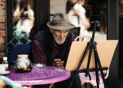 Известный абхазский художник Зураб Ачба Обычно он пишет свои картины на паперти Новоафонского монастыря, в этот день я его там не застала, только мольберт и кисти. Но спустившись с горы, встретила его недалеко от водопада, так сказать Ниагарой местного разлива. Выглядит он всегда по разному и всегда фактурно: высокий, стройный, с большими выразительными глазами, густой, седой бородой, в черной вязаной шапочке или шляпе, кожаной куртке или жилете, кожаных сапогах до колен – он целыми днями проводит здесь время в окружении детей, которым и несет свое творчество. Уже на протяжении нескольких лет, он строит школу живописи и картинную галерею для юных ценителей искусства. |