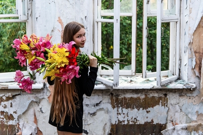 С букетом лилий на заброшке