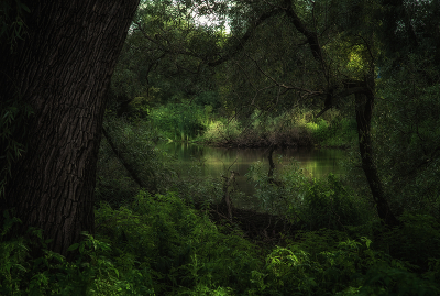 речка, деревья, лето