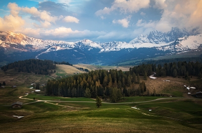 Высокогорное плато Alpe di Siusi, Доломиты, Италия.