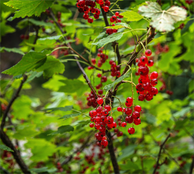 По берегам горных речек заросли красной смородины.