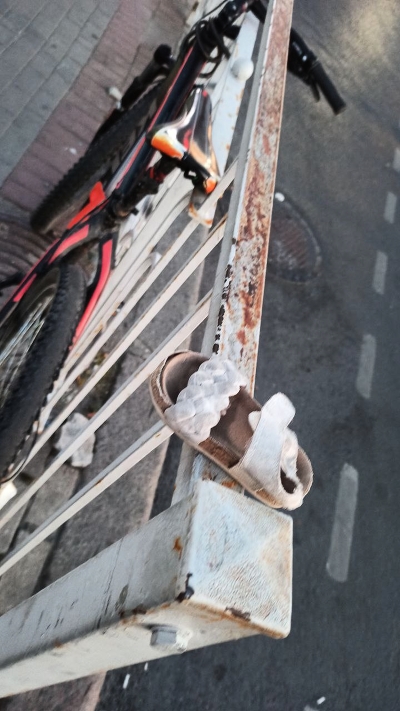 ...Вертикальность символизирует взлёт технологий передвижения: от отброшенного сандалия к велосипеду и далее к высокому.