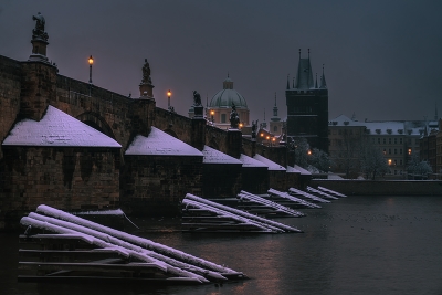 Отличный кадр. Атмосферный, с интересной композицией. Желтые огоньки жалко - но тогда я бы подумал о странном касте (на моем мониторе) на снегу. Особенно на ПП. Выборочно скорректировать? и я бы яркость снега приглушил. Ну и ч/б попробовать.