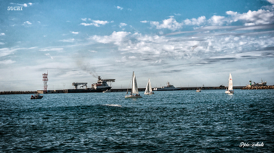 небо,море,облака и парусные лодки