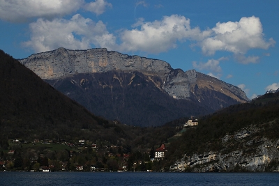 Вид с озера на посёлок Ментон-Сен-Бернар. Франция. Департамент Верхняя Савойя.