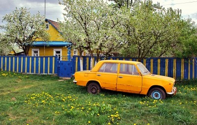 Красивая зарисовка... и машина веселая, и заборчик радостный!