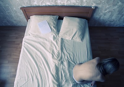ой вот эта тоже высшая, в духе моего настроения последних месяцев..опять же чистый концепт и холодная тонировка в тему..лично меня немного отвлекают обои, в идеале были бы серые без фактуры или обшарпаная стена в облупленой штукатурке, чуть более мятая постель и виньетирование к центру. Но отсутвие того, что ещё больше понравилось бы в компазиции мне, хуже работу не делает). оч. хорошо, продолжайте в том же духе