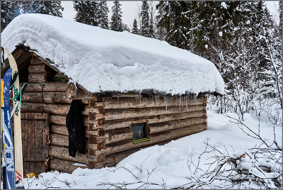 Февраль. Лес в окрестностях Архангельска. Это изба, построенная любителями лыж в лесу в 15 км. от города на лыжной трассе.
