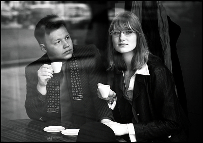 Разговор в кафе .