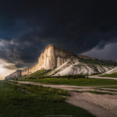 В преддверии грозы Белая скала, Белая, или Ак-Кая — скалистая гора в Крыму, расположена близ села Белая Скала Белогорского района. Вертикальная скалистая стена белого цвета возвышается над долиной реки Биюк-Карасу. |