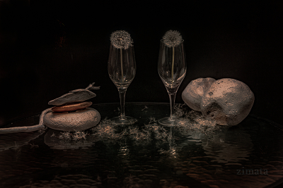 Предметный натюрморт с одуванчиками
