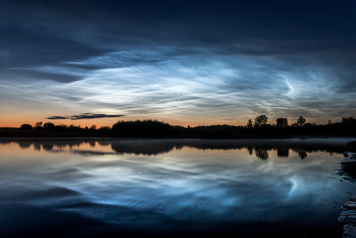 Отражение серебристых облаков теплой июльской ночью.