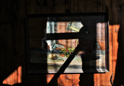 "Висит картина на стене, она заметно запылилась..."