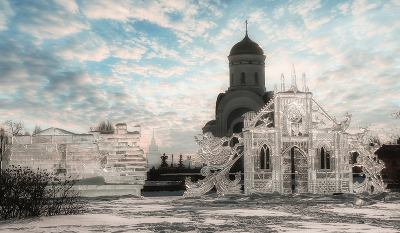 Выставка ледяных скульптур на Поклонной горе.