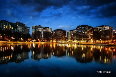 Вечер, озеро,дома