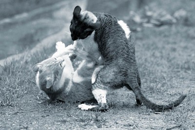 Кошачий мордобой! Отличный момент иллюстрирует,что в глазах ( в отличии от иных гуманоидов) нет злобы и презрения - чисто инстинкт, природа. Выразительно.