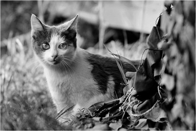 Николай Матвеенко, Спасибо, встретил его отдыхающего под лодкой, буквально в метре от воды. Как только я подошел к нему поближе, кот сразу рванул с места и скрылся в не известном направлении. Рядом с лодкой находился навес из военной защитной сетки (она видна на фото справа), я, обошел ее с другой стороны и "залег" на землю. Через минуты две вынырнула голова главного героя, к сожалению, первый кадр оказался с браком, автофокус уцепился за лодку (она за котом). Секунд 20 мы изучали друг друга, затем Матроскин, поняв, что опасность ему не угрожает, гордой походкой удалился за ближайшие кусты.