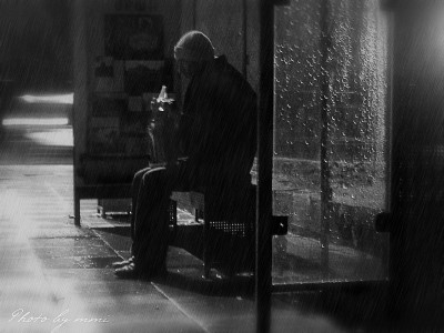 Не совсем понятно что в руке и дождь выглядит уж слишком искусственным