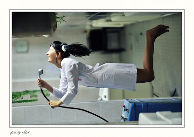 ronin, я просматривал внимательно. Для этого скопировал в фотошоп и поиграл настройками - и скажу, что та вода, которая как бы стекает, меня не убедила - я не увидел затекающей на халат воды