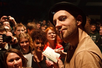 Лідэр піцерскага гурта Billy’s Band раздае аўтографы пасьля канцэрту ў клюбе «Рэактар»
