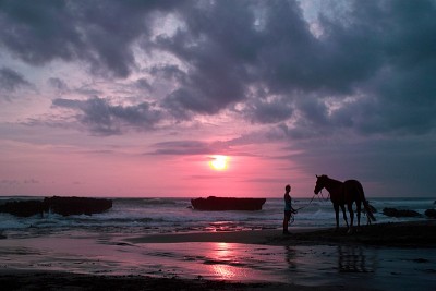 Девушка с лошадью на фоне заката