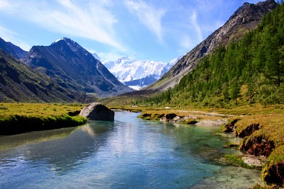 Алтай , вид на гору белуха с Ак-Кемского озера