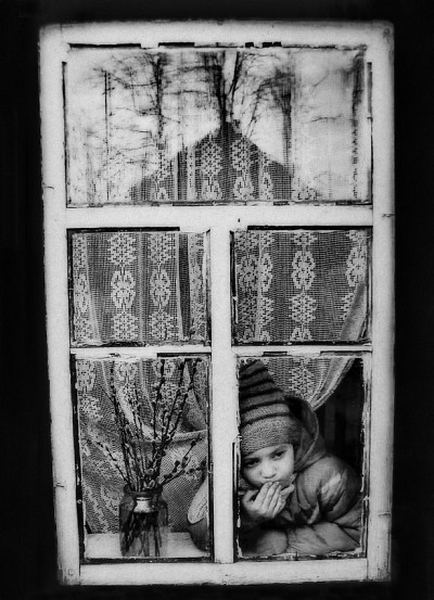 Необычно и очень интересно снято! Ребенок, отражение деревьев в стекле и трогательный букетик вербы... Душевно! Улыбка