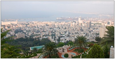Вид на Бахайские сады, город и залив.