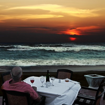 Если убрать одну рюмку, то можно было бы обыграть романтический вариант типа "Она не пришла". Отлично!