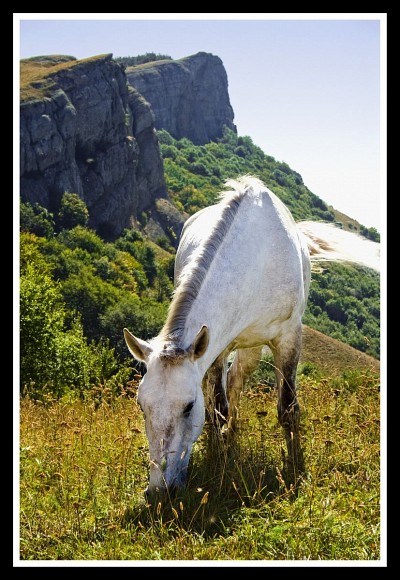 О белой лошади, что заблудилась у подножья Крымских гор, но она об этом даже и не жалеет...