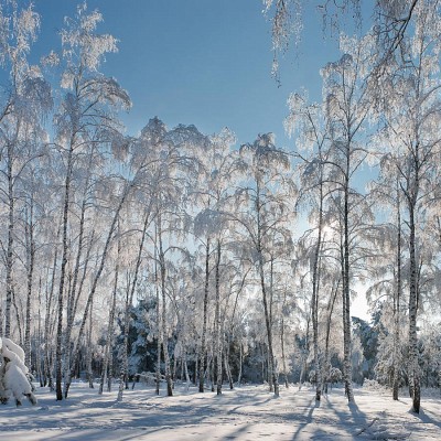 Красивый букет заснеженных берез пронизанных солнцем!!!