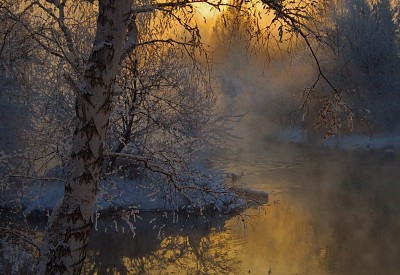 И дружен берег с золотом заката...