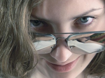 Попробуйте в кривых нажать авто... очень часто хорошо выставляет баланс белого. Мне, кажется голубоватый тон придает лишнюю холодность фотографии.А с нижней части лица стоит убрать шум. Но только не ФШ фильтром..На лбу белые полоски... так задумано? Я бы нагло шарпил (до появления артифактов) локон с лева, и реснички.. В очках стоит поработать контрастом и яркостью..