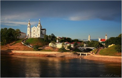 Юрий Шепелев, Двойной крест к стыду своему заметила только дома, на компьютере, жаль конечно, что собор не во всей красе получился..... Зато стоит практически ровно, т.к. если исправить небольшой завал вправо, то собор "повалится" влево, а это гораздо хуже, ибо он - доминанта и притягивает больше внимания, чем ратуша. Вообще Витебск "ровнять" - дело неблагодарное, ибо построен он на горах и холмах (Вам ли не знать